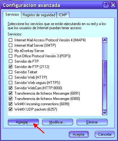 Por cada puerto que deseemos configurar, tendremos que hacer click en "Agregar..."